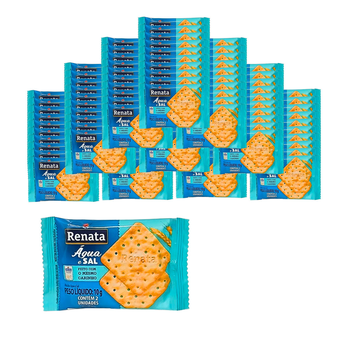 Delicie-se com o clássico Biscoito Sabor Água e Sal da Renata! Com 10g de crocância em cada unidade, esses biscoitos são ideais para acompanhar seu café, chá ou até mesmo para um lanche rápido e saboroso.