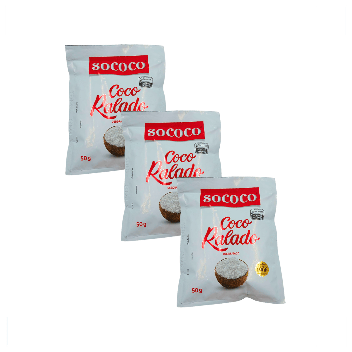 Coco Ralado Desidratado 50g Sococo - Kit com 3 Unidades