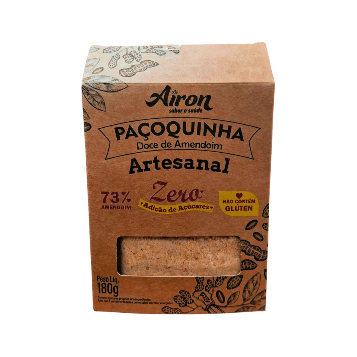 A Paçoquinha Artesanal Zero Airon 180g é a escolha ideal para quem deseja saborear o tradicional doce de amendoim de forma saudável, sem glúten, sem lactose e sem adição de açúcares. Produzida artesanalmente, preserva o sabor autêntico e a textura irresistível do amendoim, oferecendo uma experiência gourmet em cada porção.