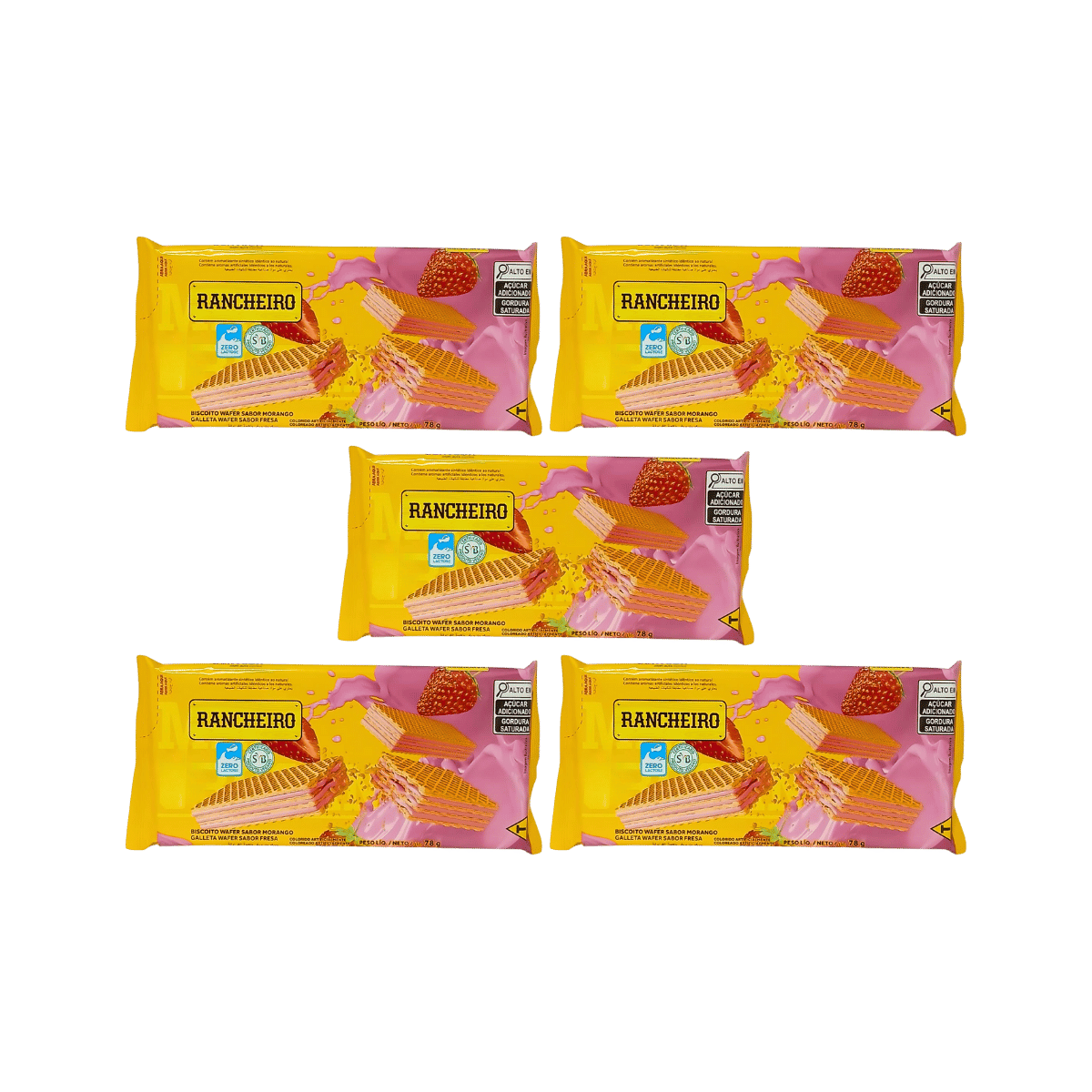 ✨ Kit com 5 unidades ✨ Sabor morango delicioso ✨ Vegano e sem lactose ✨ Crocante e irresistível